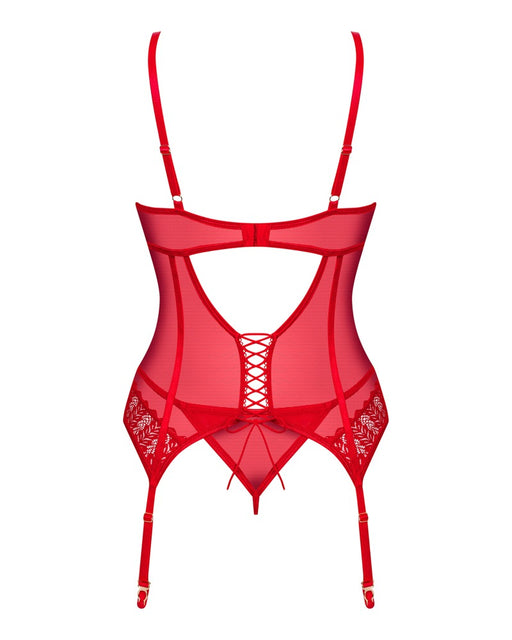 ObsessiveAuf LagerDie liebesrote Verführung!Straps-Corsage und String im roten Set Ingridia von Obsessive. Straps-Corsage aus weicher elastischer Spitze und feinem S...