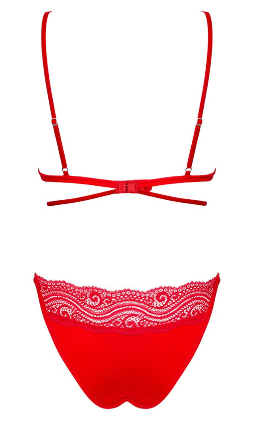 ObsessiveAuf LagerStylische Schnittführung in Liebesrot!BH und Slip als Set Diyosa von Obsessive aus weichem Stretchmaterial mit Einsätzen in Spitzenoptik. BH mit St...