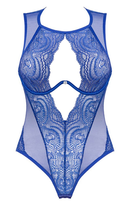 ObsessiveAuf LagerEleganter Einteiler in royalem Blau!Charmanter Body Giselia von Obsessive aus royalblauer Spitze im Mix mit zartem Powernet. Weich und elastisch fü...