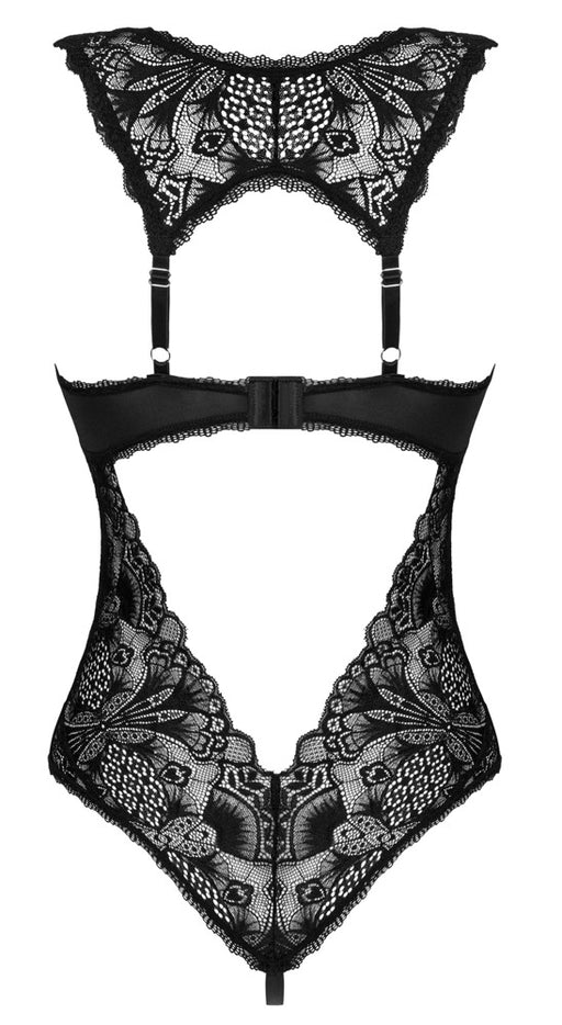 ObsessiveAuf LagerRaffinierte Rückansicht in Zweiteiler-Optik!Der schwarze Stringbody Alluria von Obsessive ist komplett aus zarter Spitze gefertigt und verfügt hint...