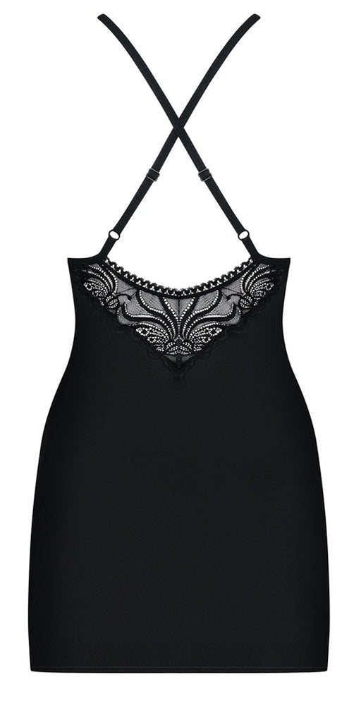 ObsessiveAuf LagerPuristische Eleganz!Elegantes schwarzes Negligé Selinne von Obsessive inklusive dazu passendem String. Beides aus softer elastischer Mikrofaser. Ne...