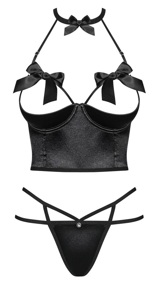 ObsessiveAuf LagerAufregendes Duo mit frecher Schleifenverzierung!Leicht gefütterte Bügel-Hebe und String im Set. Schleifenverzierte Riemchen rahmen den Busen oben e...