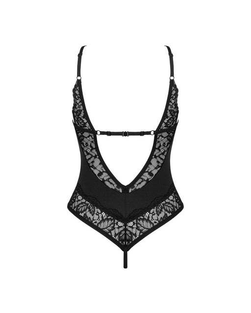 ObsessiveAuf LagerStilvoller Look mit hohem Tragekomfort – und offenem Geheimnis!Schwarzer Body ouvert Chic Amoria von Obsessive mit kleinem Schmuckelement zwischen ...