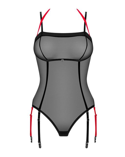 ObsessiveAuf LagerStrapshemd und Strümpfe in einem!Schwarzer Catsuit F235 von Obsessive aus Netz mit aufregender Spitzenoptik. In verführerischer Straps-Optik mit ko...