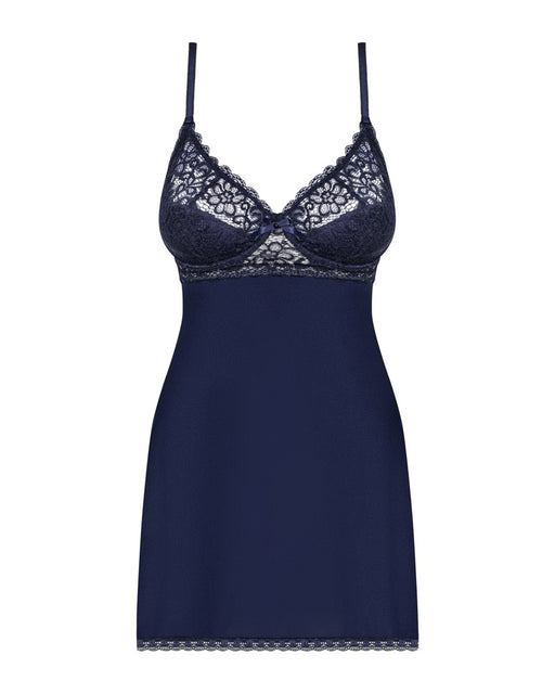 Die elegante Verführung in Nachtblau!Kurzes Babydoll mit gefütterten Bügel-Cups aus Spitze. Leicht ausgestellt und hinten mit BH-Hakenverschluss. T...