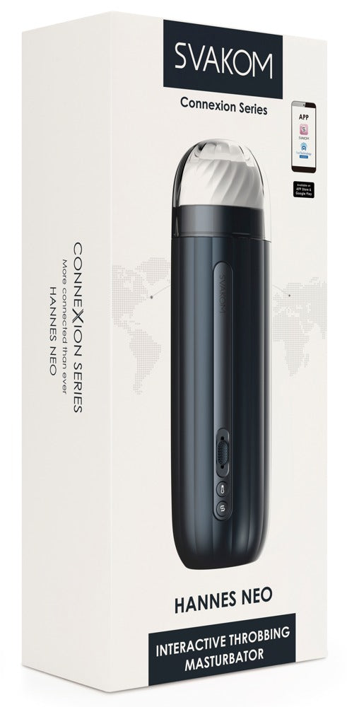 Interaktives und vollautomatisches Vergnügen mit wohliger Wärme!Vollautomatischer pulsierender Masturbator Hannes Neo von SVAKOM mit entnehmbarer r...