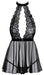 Kurzes ausgestelltes Babydoll von kissable in schwarzer Transparenz aus bildschöner Spitze (Top) und feinem Powernet (Röckchen). Seidig weich und elastisch für hohen Tragekomfort. Vorne mit großzügigem Ausschnitt bis zur Taille, rückenfrei. Das Satin-Halsband wird im Nacken, das Satin-Taillenband im Rücken gebunden. Der dazu passende kleine String ist inklusive.