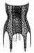 Trägerloses Strapshemd von Noir in zarter Transparenz mit feinem Leo-Samtflockprint. Vorderer Einsatz und Details im edel matt glänzenden Powerwetlook. Der weiche rundum elastische Material-Mix sorgt für hohen Tragekomfort. Der Corsagen-Style mit dekorativer Schnürung im Rücken und Haken-Schnellverschluss vorne betont gekonnt die Silhouette. 6 breite Strumpfhalter runden den verführerischen Style perfekt ab.