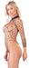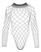 Der Body besteht aus sehr grobem, elastischem Netz, das atemberaubende Einblicke zulässt und auch den Schritt aufregend offenlegt. Am Kragen und am Arm ist der Body engmaschiger gearbeitet. Mit großem Cut-out im Rücken und extra hohem Beinausschnitt.
