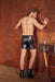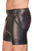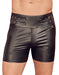 Schwarze Shorts von NEK im trendigen Mattlook mit extra hohem Bund (High Waist), der jeweils seitlich mit zwei verstellbaren Schnallenriemen versehen ist. Vorne mit praktisch-erotischem, unterlegtem Reißverschluss zum Öffnen. Herrlich elastisch für hervorragenden Tragekomfort.