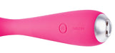 Dieser ergonomisch geformte G-Punkt-Vibrator sorgt mit 5 flüsterleisen Vibrationsmodi in jeweils 5 Intensitäten für ein abwechslungsreiches Vergnügen. Dazu bietet der Vibratorkopf mit seiner ovaler Ringstruktur eine besonders stimulationsintensive Oberfläche, die sich auch bestens zur Klitorisstimulation nutzen lässt. Bequem steuerbar per Knopfdruck, wasserdicht und wiederaufladbar mit dem beiliegenden Magnetic Charger-Kabel. Inklusive Aufbewahrungsbeutel.