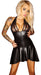 Kurzes Kleid von NOIR in enger taillierter Schnittführung mit ausgestelltem Röckchen. Im schwarzen edlen Mix aus weichem Powernet mit Lack-Details (Oberteil) und Powerwetlook (Rockteil). Vorne mit durchgehendem 2-Wege-Reißverschluss vom Dekolleté bis zum Saum. Rückenfrei - der Neckholder ist zum Binden. Der ausgestellte Rock ist vorne etwas kürzer geschnitten als hinten.