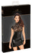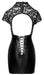 Kurzes enges Kleid von Noir im schwarzen edlen Material-Mix aus zarter Spitze (Oberteil) und matt glänzendem Powerwetlook (Rockteil). Rundum weich und elastisch für hohen Tragekomfort. Mit kurzem Arm und schönem Stehkragen, hinten mit Hakenverschluss. Höchst raffinierte Rückansicht mit freiem Rücken und variabler offener Schnürung im Rockteil von der Taille bis zum Po.