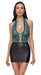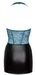 Eng geschnittenes kurzes Kleid von Cottelli LINGERIE in Zweiteiler-Optik mit Oberteil aus feiner petrolfarbener Spitze und Rockteil im edlen schwarzen Mattlook. Bis zum Bauchnabel tief dekolletiert - 3 roségoldfarbene Ringe und Stretchbänder halten alles schön zusammen. Rückenfrei, der Neckholder hat einen Clipverschluss.