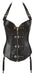 Corsage von ZADO aus Lammnappa-Leder mit Steppung im Biker-Style und Taillenband. In der Front mit durchgehendem Reißverschluss und Schnallen, hinten mit Schnürung - wahlweise blickdicht unterlegt oder "Rücken offen". Träger verstellbar, Strapse verstell- und abnehmbar. Schwarz. Ohne String und Strümpfe.