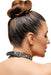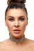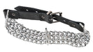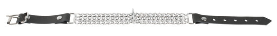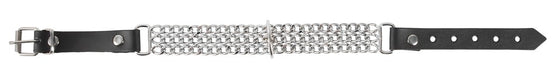 Schwarze Leder-Halsfessel von ZADO mit 3 Metall-Gliederketten, an denen vorne ein Ring befestigt ist, der auf die Führungsleine (nicht beiliegend) wartet… Mit Schnallenverschluss verstellbar.
