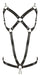 Lederriemen, kombiniert mit stählernen Ringen, Metallketten-Trägern und zwei Metallketten im komplett offenen Schritt. Alle Riemen verstellbar für perfekte Passform.