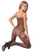 Netz-Catsuit aus schwarzem Stretch-Netz. Hier wird nichts der Fantasie überlassen. Im Schritt und seitlich provozierend offen. Schmale Träger. Mit Fuß. Nahtlos gefertigt. 100% Polyamid.