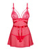 Extrakurzes ausgestelltes Babydoll und String im roten Set Lovlea von Obsessive. Aufregend transparentes Babydoll mit Riemchen akzentuierten Spitzen-Cups und Satin-Bindeschleife in der Taille. Rundum weich und elastisch für hohen Tragekomfort.