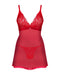 Das filigrane Babydoll mit Spitzen-String Chilisa von Obsessive vereint Eleganz und Komfort. Die zarten Spitzendetails an Brust und Saum lenken alle Blicke auf sich, währen der semitransparente Stoff weibliche Kurven umschmeichelt. Der Rücke ist einladend offen und mit einem Verschluss versehen, der sich individuell einstellen lässt.