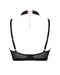 Schwarzer Bügel-BH Brasica von Obsessive im feinen elastischen Material-Mix mit goldfarbenen Details. Modischer Style mit Neckholder-Halsband und verstellbaren Dekolleté-Stretchriemchen. Die Träger sind ebenfalls verstellbar. Halsband im Nacken mit verstellbarem Kettchen-/Karabinerverschluss.
