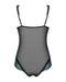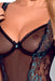 Transparenter schwarzer Body ouvert Amanta von Obsessive mit schöner zweifarbiger Spitze an den Seiten. Rundum weich und elastisch für hohen Tragekomfort. Zwischen den Cups mit Schmuckelement. Die Träger sind passend verstellbar.