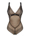 Schwarzer, zart transparenter Body Estiqua von Obsessive im raffinierten Material- und Muster-Mix. Rundum weich und elastisch für hohen Tragekomfort. Figur-vorteilhafte Schnittführung mit soften Cups. Im Rücken mit verstellbarem Hakenverschluss. Die extra breiten komfortablen Träger sind ebenfalls passend verstellbar.