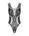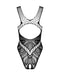 Schwarzer Body ouvert B138 von Obsessive in verschiedenen Netzstrukturen und mit einzigartiger eingewebter Optik. Rundum weich und elastisch für hohen Tragekomfort. Knapp geschnitten und mit großem Ausschnitt im Rücken. Im Schritt verführerisch offen.