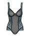 Transparenter schwarzer Body ouvert Amanta von Obsessive mit schöner zweifarbiger Spitze an den Seiten. Rundum weich und elastisch für hohen Tragekomfort. Zwischen den Cups mit Schmuckelement. Die Träger sind passend verstellbar.