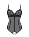 Schwarz-transparenter, knapp geschnittener Body ouvert Serena Love von Obsessive aus zartem Stretchtüll. Vertikale Streifen für einen schlanken Look. Mit kleinem Schmuckelement zwischen den Bügel-Cups aus feiner Blütenspitze. Auch an den Beinausschnitten ist der Body mit Blütenspitze verziert. Alles weich und elastisch für vollen Tragekomfort. Die Träger und der verstellbare Hakenverschluss im tiefen Rückenausschnitt sind für perfekten Sitz verstellbar. Auch die zwei Stringriemchen im verführerisch offenen Schritt lassen sich passend verstellen.