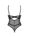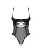 Knapp geschnittener, schwarzer Stringbody ouvert Roxelia von Obsessive. Zeigefreudiger Style aus transparentem Tüll mit vorteilhaften Streifen. Rundum weich und elastisch für hohen Tragekomfort. Die Bügel-Cups heben und stützen den freien Busen. Darunter als zusätzlicher Eyecatcher ein verführerischer Cut-out mit Bändchen in Schnüroptik. Die Träger sind passend verstellbar. Im tiefen Rückenausschnitt stylische Riemchen mit verstellbarem Hakenverschluss. Der Schritt mit zwei Stringriemchen ist verführerisch offen.