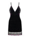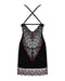 Figurbetonendes Dessouskleid und passender String im Set Vanessme von Obsessive. Im raffinierten Mix aus blickdichtem schwarzem Stretchmaterial und transparenter 2-farbiger Spitze. Alles weich und elastisch für vollen Tragekomfort. Mit soften Cups und Hakenverschluss hinten gearbeitet. Die Träger kreuzen sich im freien Rücken und sind passend verstellbar.