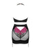 Top und Straps-Rock im Set Rosenty von Obsessive, das Dekolleté und Po mit weichem Netz und feiner pinkfarbener Rosenspitze in sehr verführerische Szene setzt. Das blickdichte Stretchmaterial schmiegt sich genauso hautnah an, wie die transparenten Einsätze vorne am Top und hinten im Rock. Das Top ist am Neckholder passend verstellbar und wird im freien Rücken mit einem verstellbaren Hakenverschluss geschlossen. Auch der enge kurze Rock hat hinten am Bund einen verstellbaren Hakenverschluss. Die Strumpfhalter sind verstell- und auch komplett abnehmbar.