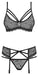 BH, Strapsgürtel und String im 3-teiligen Verführ-Set aus edler Spitze mit Riemchen- und Strass-Details in der Front. Träger und Strapse verstellbar. Schwarz.