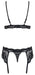 BH, Strapsgürtel und String im 3-teiligen Verführ-Set aus edler schwarzer Spitze. Träger und Strapse verstellbar.