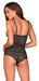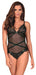 Body mit Spitzen-Cups und Höschenteil aus Spitze. Sonst rundherum transparent und mit Spitzenbändern verziert. Die Träger sind für perfekte Passform verstellbar.