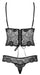 Der schwarze Stringbody Alluria von Obsessive ist komplett aus zarter Spitze gefertigt und verfügt hinten über eine Schnürung. Träger verstellbar. Schwarz.