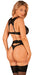 3-teiliges Dessous-Set Donna Dream von Obsessive bestehend aus Bügel-BH, Strapsgurt und Riostring. Alle Teile aus wunderschöner schwarzer Spitze, die sich elastisch und weich anschmiegt. Bügel-BH im Rücken mit charmantem Spitzendetail und verstellbarem Hakenverschluss. Auch die Träger sind passend verstellbar. Strapsgurt jeweils seitlich mit einem Clip-Strumpfhalter und verstellbarem Hakenverschluss hinten.
