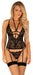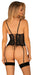 Strapshemd und String im Set Alessya von Obsessive aus feiner Effektspitze im Mix mit zartem Powernet. Weich und elastisch für höchsten Tragekomfort. In raffinierter Schnittführung mit dekorativen, elastischen Riemchen zwischen den Bügel-Cups und im Dekolleté, die zum Clipverschluss im Nacken führen. Aufregende Rückansicht mit variabler Schnürung. Die Träger und Strumpfhalter sind passend verstellbar, die Strumpfhalter auch komplett abnehmbar. Der schlichte schöne Spitzenstring komplettiert diesen verführerischen Look.