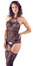 Strapshemd mit angewebten Strümpfen aus streichelweichem Netz mit raffinierten Details und Spitzenoptik. Die Strümpfe sind seitlich mit einer eingewebten Ranke versehen. Alles nahtlos gefertigt und elastisch für perfekten Tragekomfort. Ein kleiner Spitzen-String komplettiert dieses aufregende Straps-Set.
